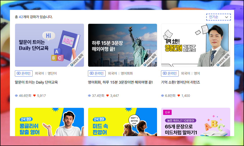 화면 우측 상단의 정렬 옵션을 활용하면 즉시 찾을 수 있어요. 높은 인기도는 수업 품질과 실용성을 입증하는 지표이기도 합니다. 이미 입증된 우수한 강의부터 시작하는 것이 좋은방법입니다.