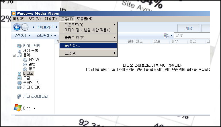 이제 상단 메뉴바에서 "도구" 항목을 클릭하세요. 도구 목록이 열리면 여러 옵션이 나타나는데, 그중에서 "옵션"을 선택합니다. 윈도우 미디어 플레이어의 다양한 기능을 세부적으로 조정할 수 있어요. 자막 구성을 완전히 마무리하려면 이 옵션 창에서 추가 작업을 해야 합니다.