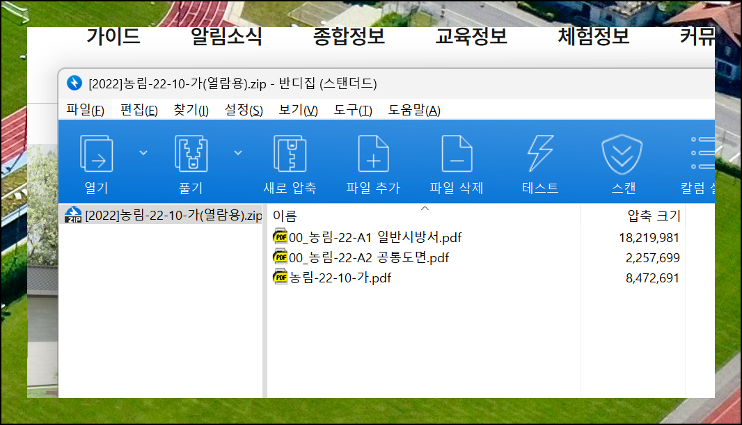 다운로드한 파일은 압축된 상태로 제공돼요. zip 형태로 되어 있는데요. 무료로 사용 가능한 압축해제 소프트웨어인 알집이나 반디집을 활용하시면 되요. 열람용 파일을 살펴보면 농가주택과 관련된 도면, 일반시방서, 공통자료 등이 포함되어 있습니다.
