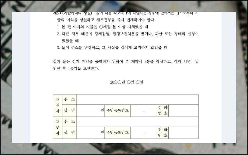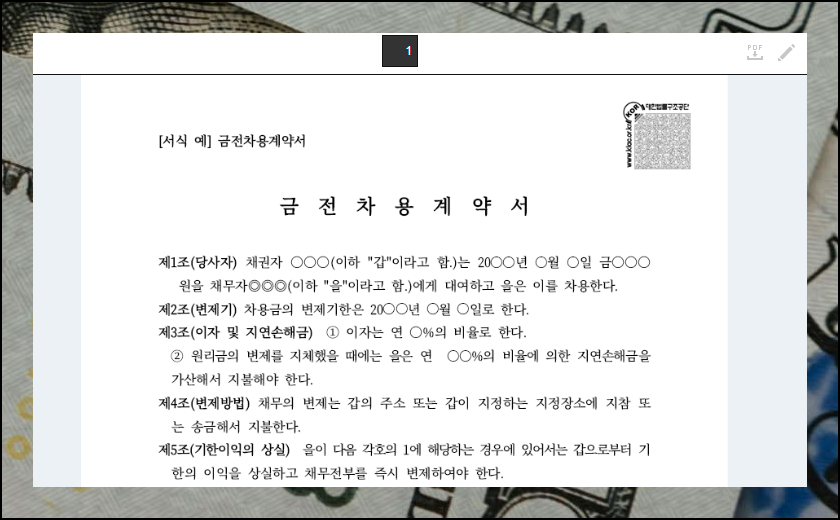 단순한 현금 보관이 아니라 돈을 빌려주는 상황이라면 금전차용계약서 서식을 활용해야 합니다. 이런 양식은 법률구조공단에서 손쉽게 받을 수 있어요.