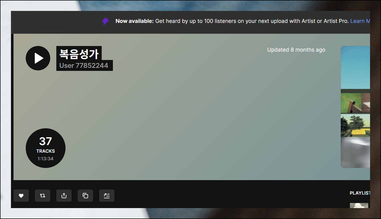 특히 제가 이번에 알려드리는 곳에서는 국내에서 찾기 힘든 다양한 찬양곡들을 제공하고 있습니다. 회원가입만 하면 개인 플레이리스트까지 만들 수 있어서 더욱 편리하죠.