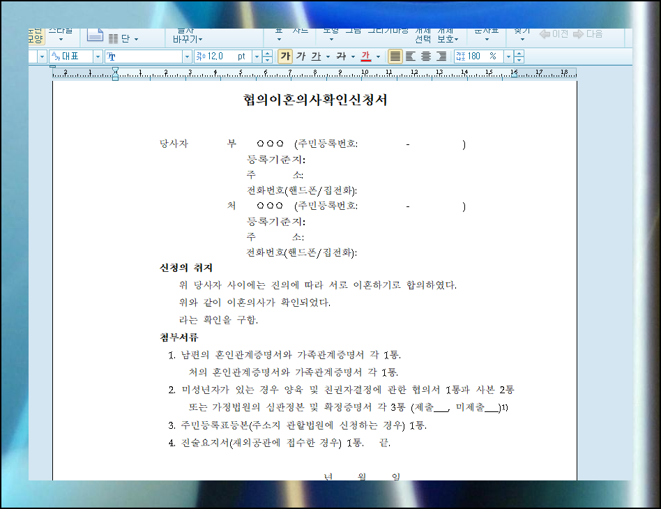 이혼 합의가 완료된 상황에서는 신청서와 첨부서류를 제대로 준비하는 것이 중요합니다. 가정법원에 직접 방문하시면 필요한 양식을 바로 받을 수 있어요. 추가로 제출해야 하는 서류들은 대부분 시청이나 구청 같은 관공서에서 발급받을 수 있습니다. 정해진 서식이 있기 때문에 빈칸만 채우면 되니까 복잡하지 않아요.