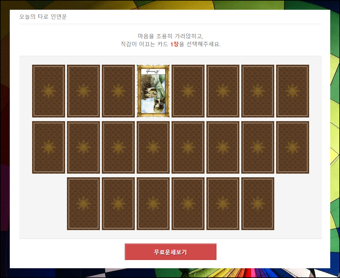 전통적인 궁합보기와는 완전히 다른 매력을 가진 타로 카드를 통해 인연을 새로운 시각에서 바라볼 수 있어요. 하나의 카드로 오늘의 인연운을 확인해보는 것만으로도 신선한 통찰을 얻을 수 있습니다.
