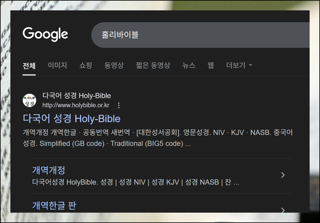 영어 실력이 부족해서 이해하기 어렵다면 걱정하지 마세요. 이런 경우에는 국내 웹사이트인 Holy-bible을 함께 활용하면 정말 도움이 됩니다.