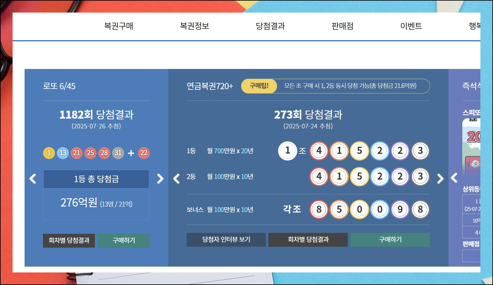 당첨 결과 페이지에서 로또당첨번호 메뉴를 선택하면 됩니다. 지금까지의 모든 추첨 기록을 전체보기로 확인할 수 있어요. 조회 기능을 활용하면 특정 회차를 바로 찾아서 볼 수 있어 시간을 절약할 수 있습니다.