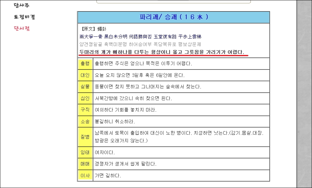 ▼명리닷컴에서는 당사주 외에도 많은 운세 서비스를 제공하고 있습니다. 궁합, 작명, 이름풀이, 욱일점, 주역점, 택일 등 많은 역술 서비스를 이용할 수 있는 곳이죠.