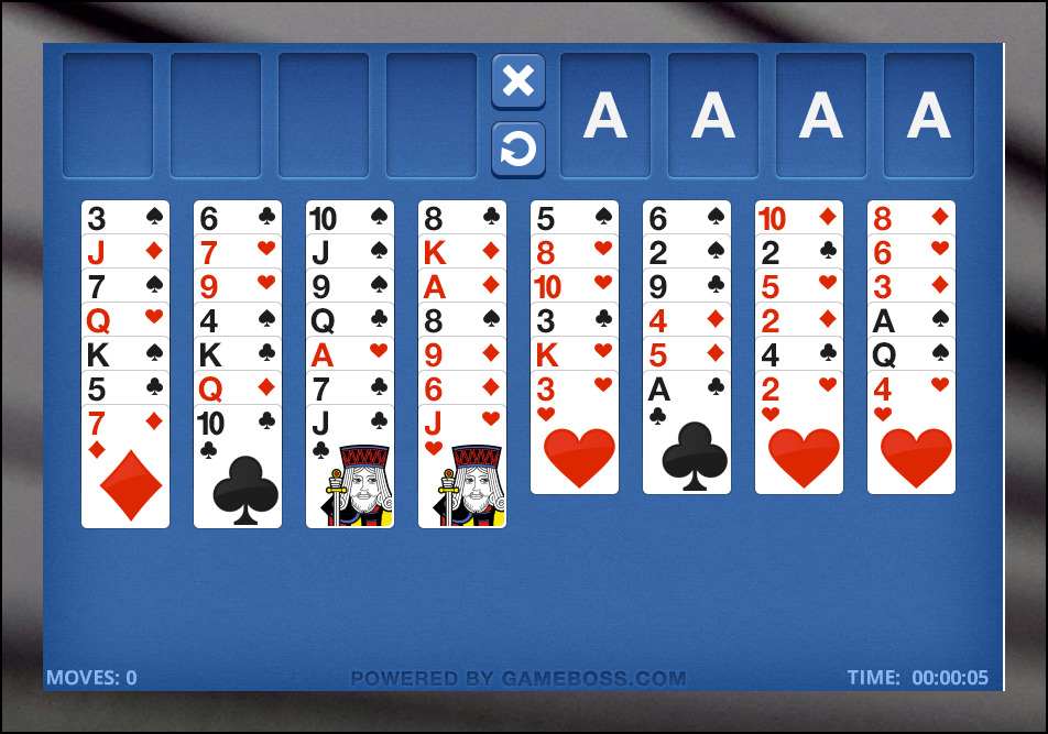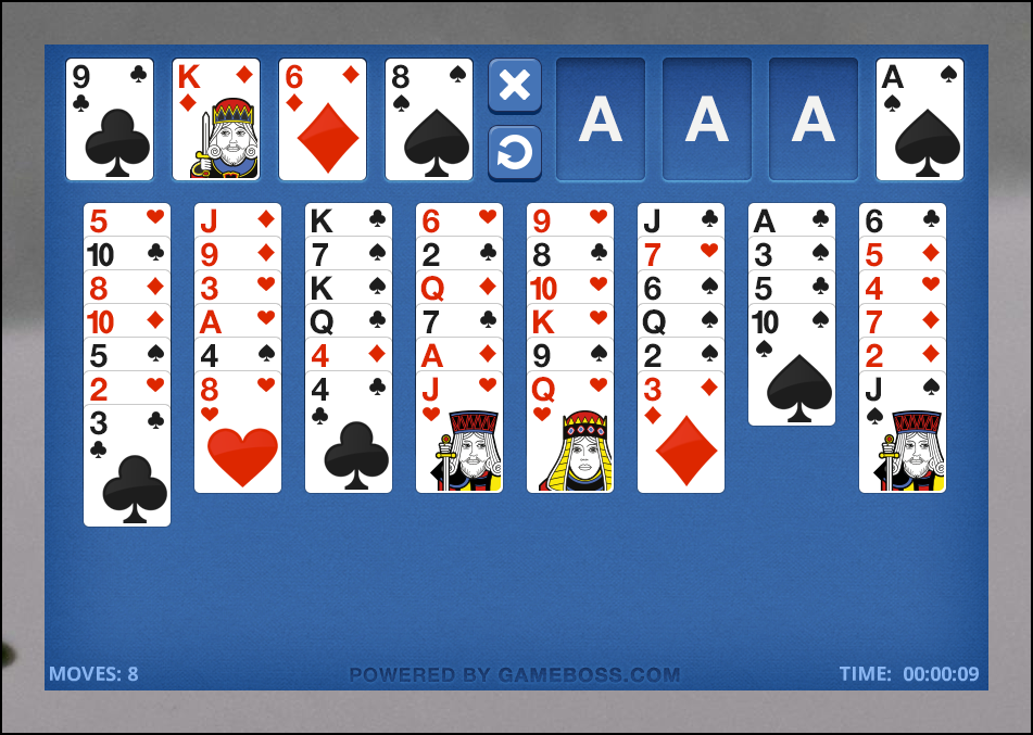 프리셀은 52장의 카드를 사용하는 퍼즐 게임이에요. 8개의 세로줄에 배치된 카드들을 각 무늬마다 에이스부터 킹까지 순서를 맞춰 완성하는 것이 목적입니다. 위쪽 4개의 임시 보관소에는 패를 잠시 넣어둘 수 있어요. 빈 칸에는 원하는 카드를 자유롭게 올려놓을 수 있습니다. 카드를 쌓을 때는 큰 수에서 작은 수 순서로, 빨간색과 검은색을 번갈아가며 놓아야 해요.