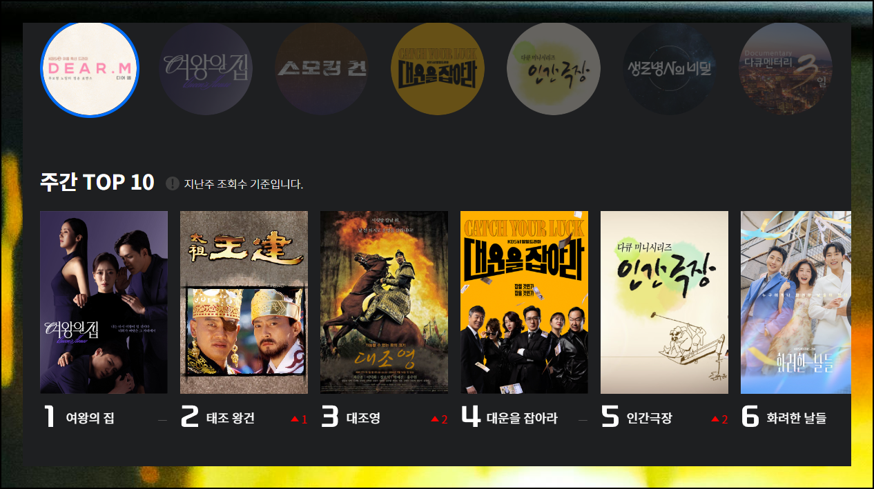 매주 새롭게 업데이트되는 인기 순위에서 가장 많은 사랑을 받는 작품들을 확인할 수 있습니다. 최신 연속극부터 클래식한 명작까지 다채로운 카테고리가 준비되어 있어요. 버라이어티, 드라마, 교육 프로그램 등 개인 선호도에 맞춰 골라볼 수 있죠. 무료 tv 다시보기로 미처 보지 못한 회차들도 손쉽게 따라잡을 수 있습니다.