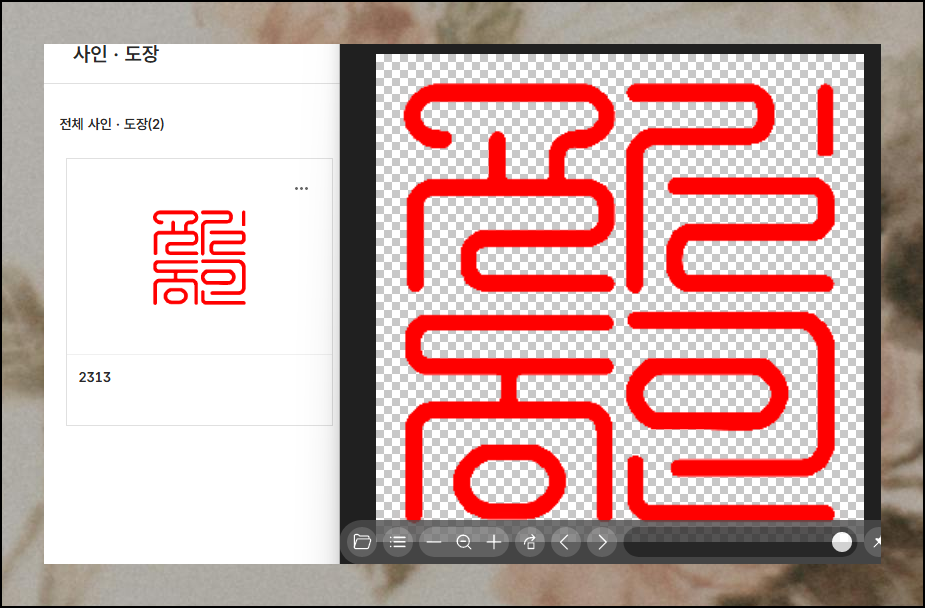 처리 과정이 모두 끝나면 완성된 파일들이 나열된 목록에서 방금 만든 것을 확인할 수 있어요. [다운로드] 버튼을 눌러서 투명 배경으로 변환된 도장 파일을 로컬 저장소에 받아주세요. 이제 어느 문서에 삽입해도 인장의 붉은 부분만 깔끔하게 보이게 됩니다.