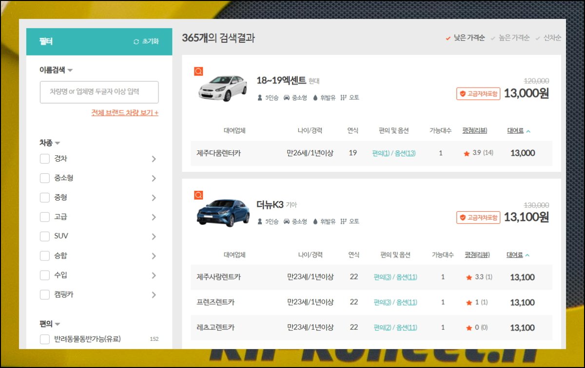 제주 렌트카 요금표 완벽 비교, 합리적인 예약 방법