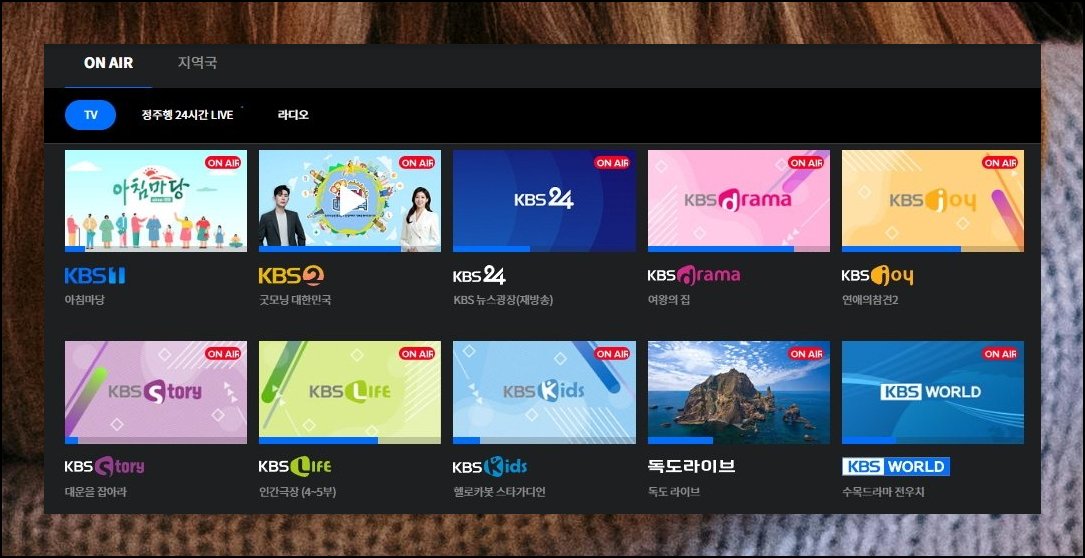 좌측 상단 ON AIR 표시를 선택하면 곧바로 무료 생중계가 열립니다. 오래 기다리지 않아도 원하는 영상을 바로 TV보기 할 수 있어요. 디지털 기기에 서투른 분도 다룰 수 있게끔 화면이 간결하게 설계되어 있습니다.