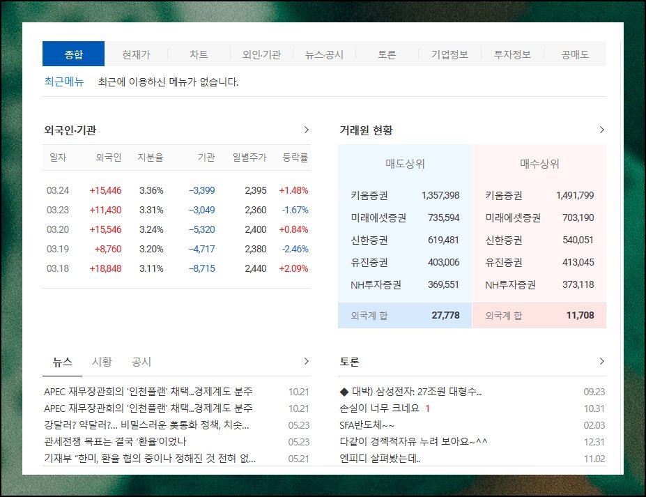 (7) 매매 동향부터 뉴스까지 한 곳에서