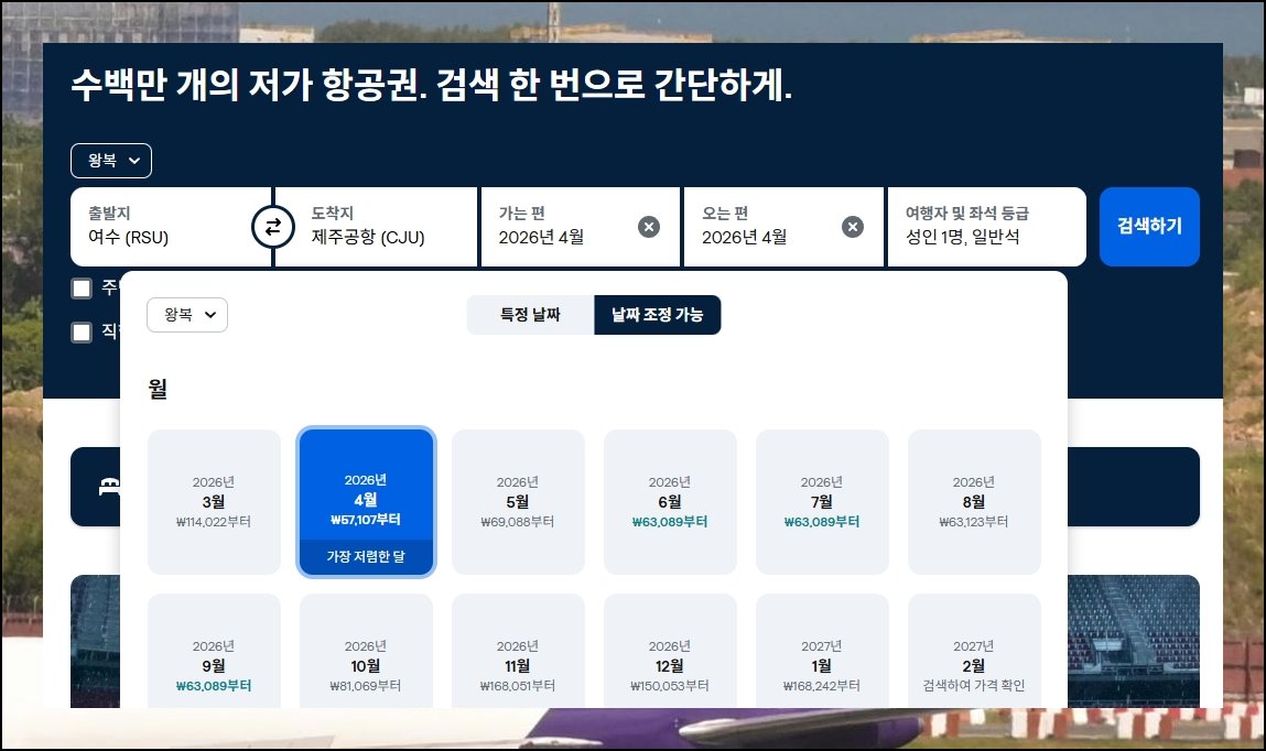 여수 제주 항공권 6만 원대 왕복 직항 최저가 찾는 법