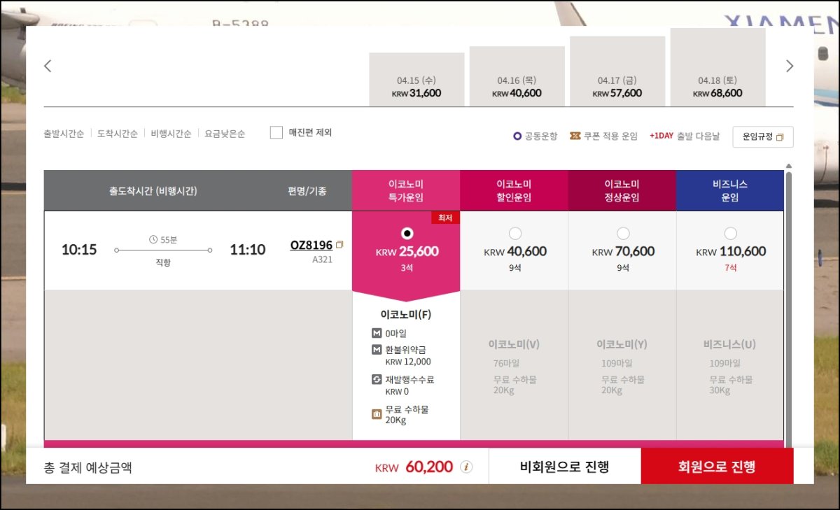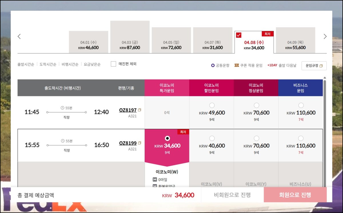 (5) 원하는 시간과 항공사 고르기
