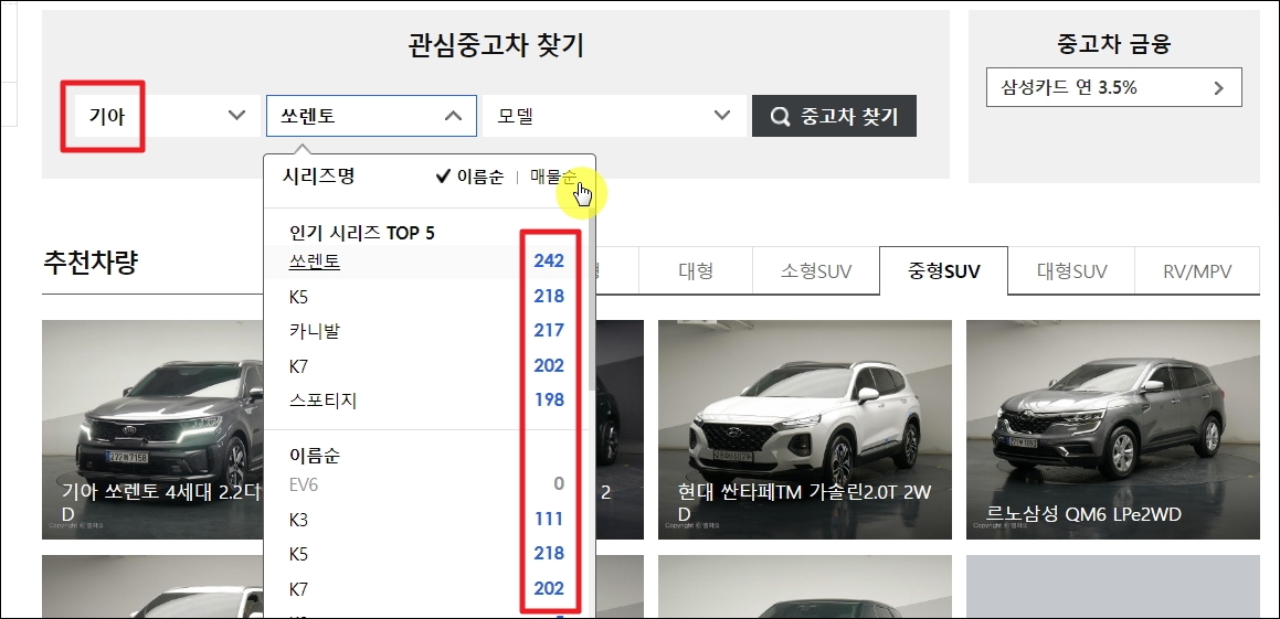 온라인으로 기아자동차 중고차가격표 제대로 보기.