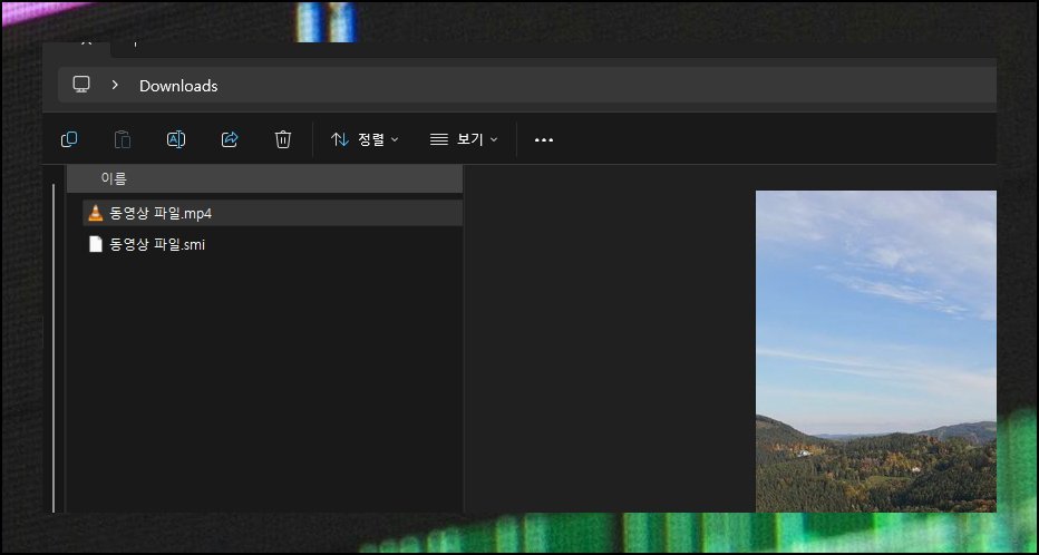 빈 폴더를 하나 생성한 뒤 동영상 파일과 텍스트 문서를 함께 담아 주세요. 열어보면 두 개의 항목이 나란히 있을 겁니다. F2 키를 활용해 양쪽 파일명을 완전히 똑같이 맞춰야 해요. 확장자는 서로 다르지만 이름 자체가 일치해야 이후 자막넣기 과정에서 정상적으로 인식할 수 있습니다.