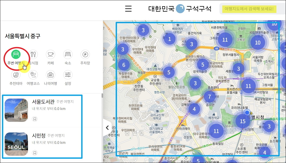 대한민국 여행지도 온라인 서비스 무료 이용하기