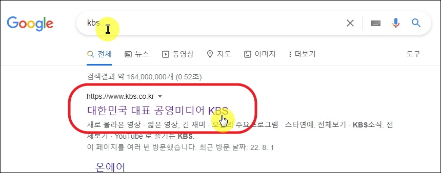 ▼그럼 어떻게 kbs드라마 다시보기 하는지 알려드리겠습니다. 일단 kbs 공식 홈페이지에 접속해야 합니다. 사이트 주소를 직접 입력해서 접속하는 것이 빨라요.