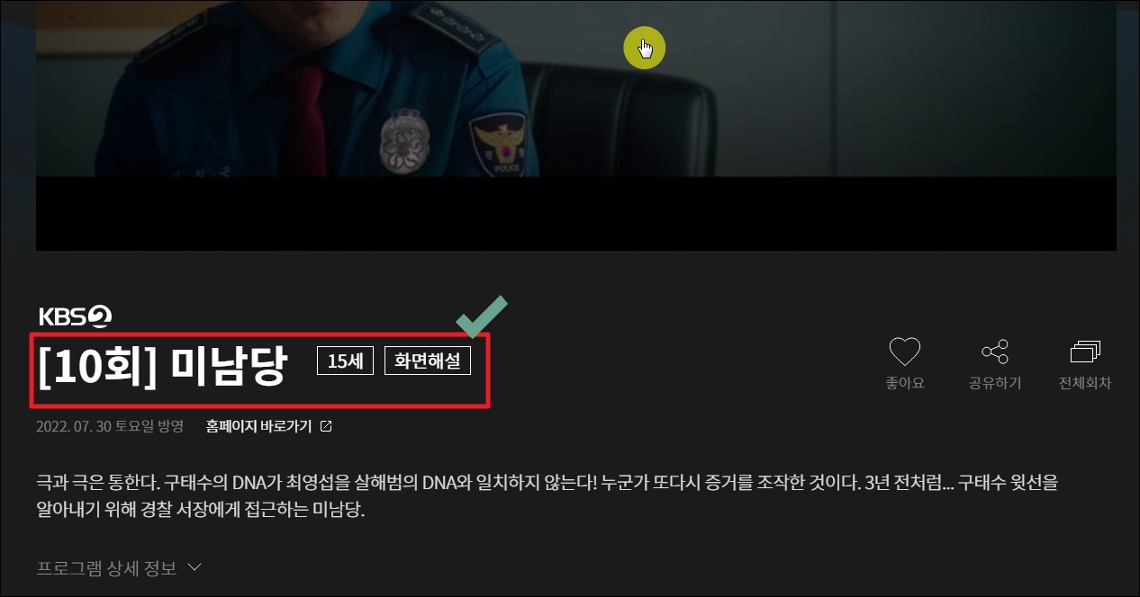 ▼저는 현재 kbs에서 방영되고 있는 "미남당"이라는 드라마를 선택했습니다. 화면 해설 기능도 사용할 수 있네요.