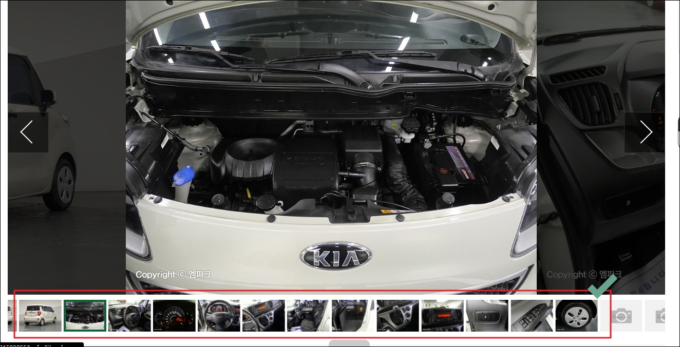 ▼사진 다음으로는 차량정보, 점검이나 이력 정보를 확인할 수 있습니다. 당연히 어떠한 옵션이 장착되어 있는지도 알 수 있죠.