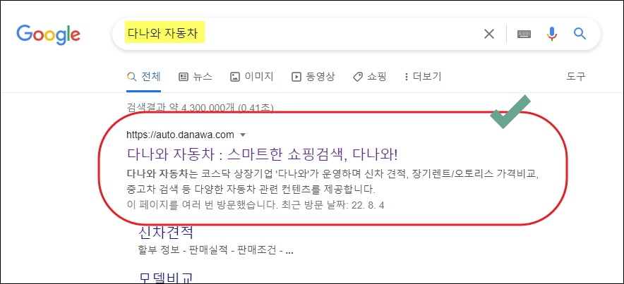 ▼다나와 자동차 홈페이지에 접속하면 중고차 검색 메뉴를 클릭해 주세요.