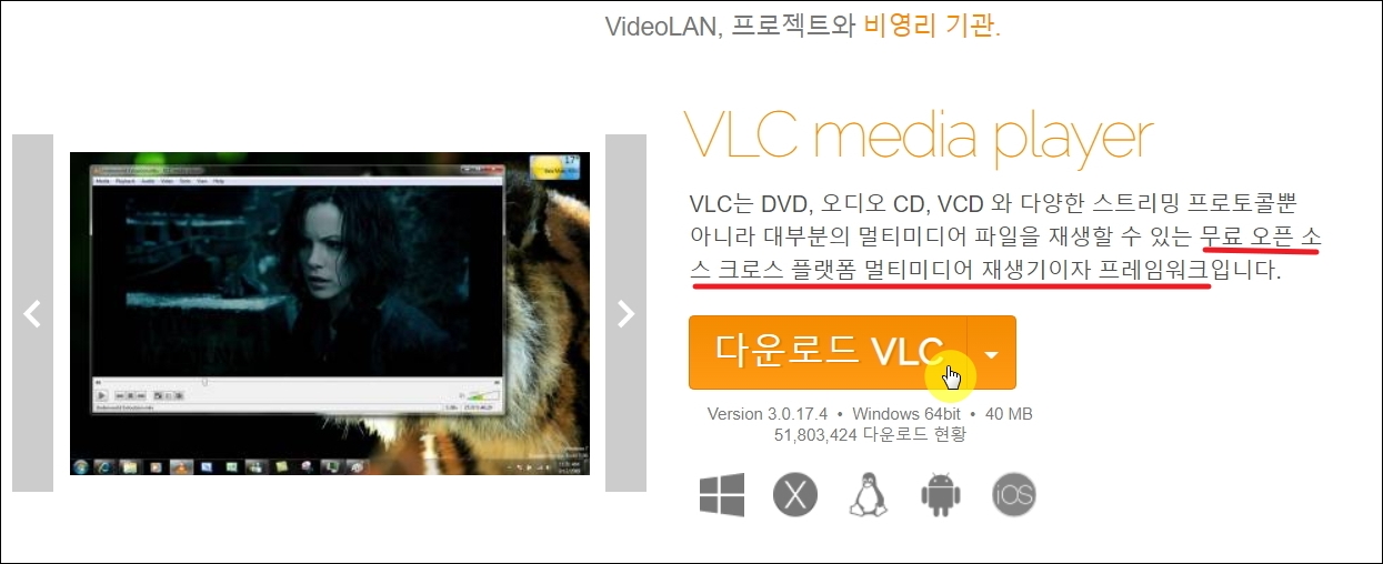 ▼요즘에는 여러 동영상 플레이어에서 굳이 통합코덱의 도움 없이 대부분의 코덱을 재생할 수 있게 되어 있습니다. 다음은 제가 주로 이용하는 플레이어인데요. 통합코덱 다운로드에 대해 알려드린 후, 플레이어 설치 방법도 추가로 설명해 드리도록 하겠습니다. 완전 무료로 사용할 수 있고, 윈도우, 리눅스, 맥북 등의 운영체제에서 사용할 수 있어서 정말 좋아요.