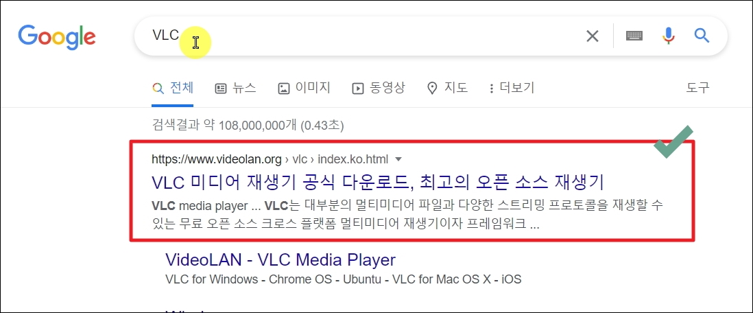 ▼이번에는 앞에서 언급한 통합코덱이 필요 없는 동영상 플레이어를 설치하는 방법을 알려드리겠습니다. 바로 VLC 미디어 재생기인데요. 오픈 소스 재생기이기 때문에 누구나 완전 무료로 사용할 수 있습니다.