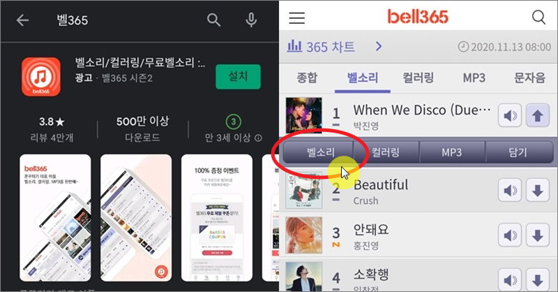지금까지 벨소리 무료다운받는곳 2가지를 알려드렸습니다. 이정도만 알아도 최근에 나온 곡이나 인기 많은 곡을 쉽게 벨소리로 사용할 수 있습니다.