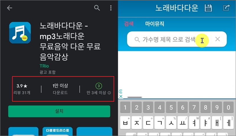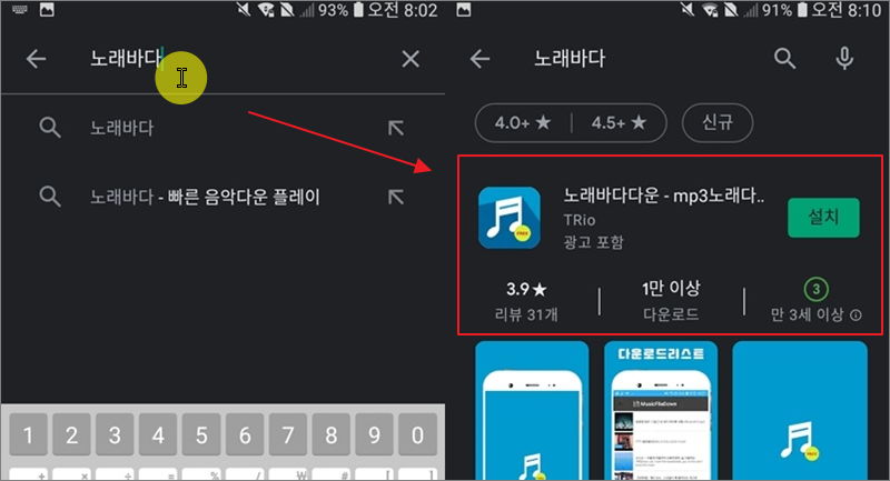 안내와 같이 mp3 파일로 된 음악이나 노래 파일을 다운 받을 수 있습니다. 어플을 실행한 후 벨소리로 사용하고 싶은 노래를 검색해 봅니다. 가수명이나 제목을 입력하면 쉽게 찾을 수 있습니다.