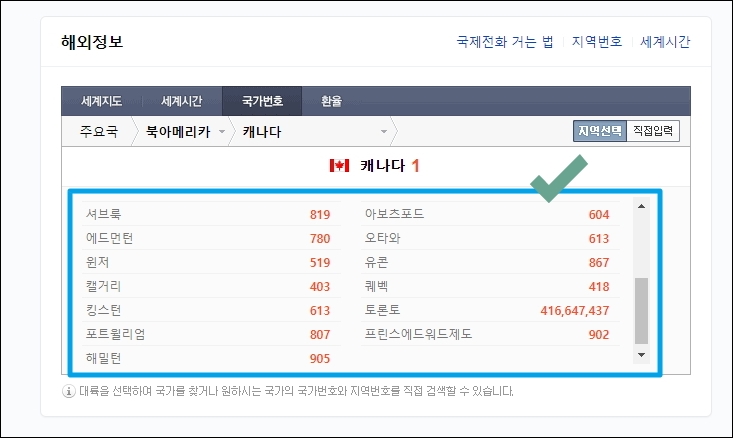 캐나다 국제전화 국가번호, 지역번호, 거는 법 안내.