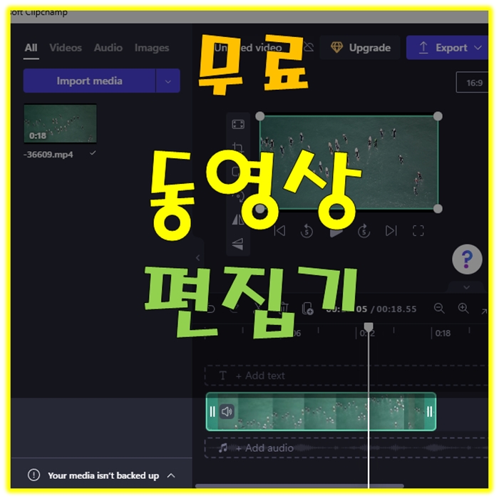 무료 동영상 편집기를 실행한 화면이 나타났습니다. 본격적으로 항상 시작을 시작해 볼게요. 일단 가장 먼저 "Import media"를 편집하고자 하는 영상소스를 추가해 주세요. 사진, 동영상, 음악 파일 모두 추가 가능합니다.