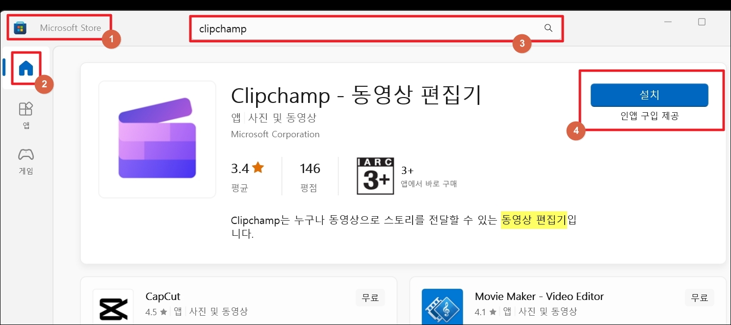 제가 추가하는 동영상 편집 프로그램은 마이크로소프트 스토어에서 무료 다운이 가능합니다. "클립챔프"라고 영어로 검색하면 쉽게 찾을 수 있는데요.