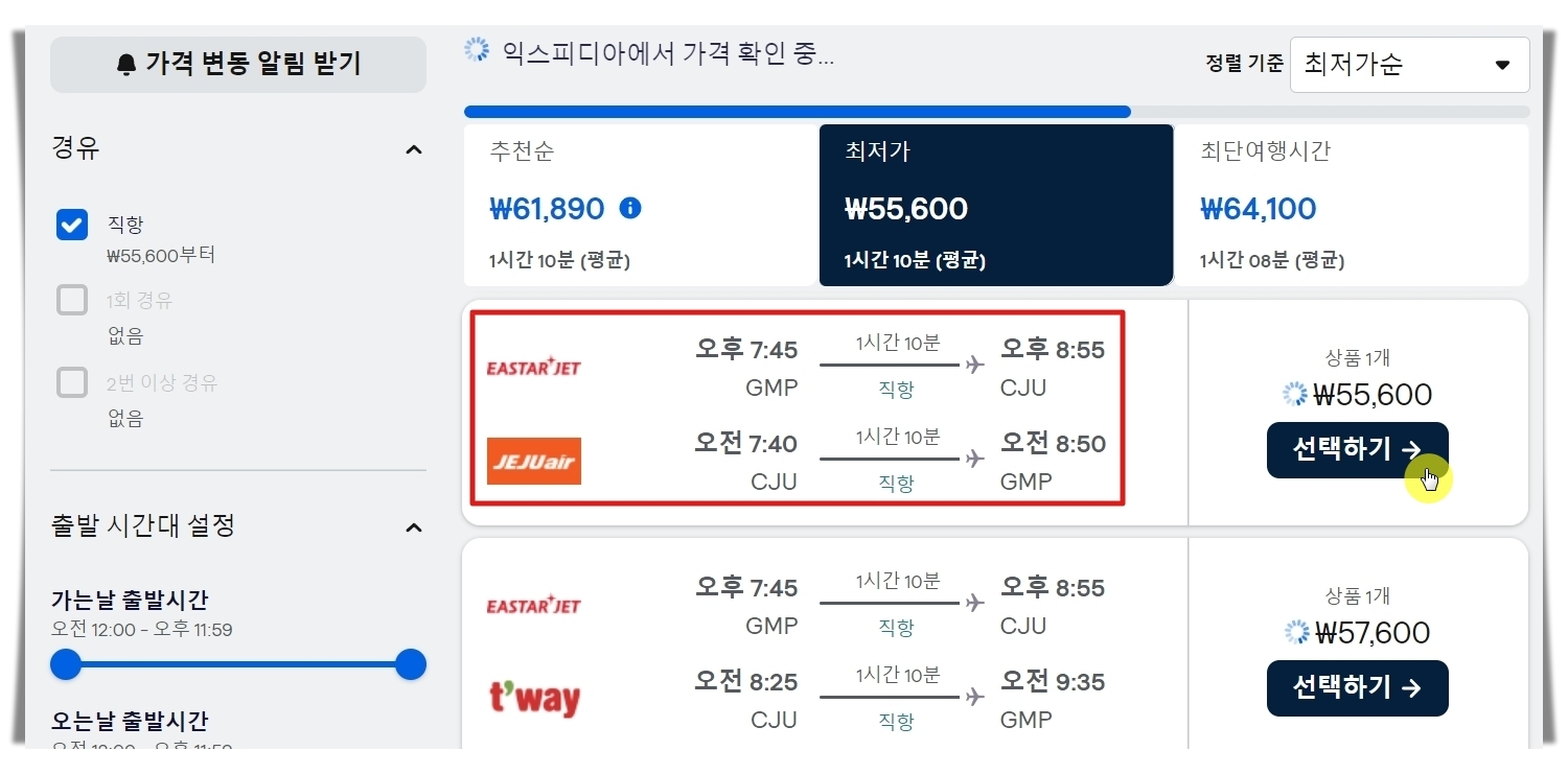 제주도 항공권 최저가 금액으로 구하기.