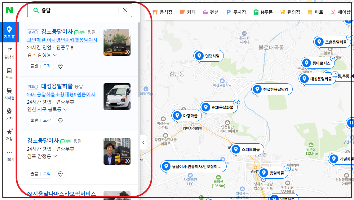 5. 이번에는 용달 이사에 대한 견적을 내는 방법을 알려드리겠습니다. 네이버 지도 사이트를 이용하면 쉽게 할 수 있어요.